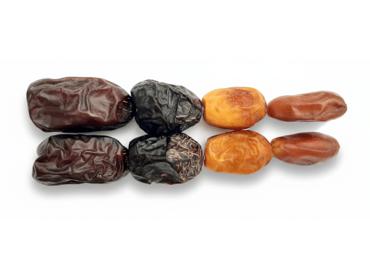 Les dattes fraîches, appelées Routab, sont moelleuses car très humides : elles sont gorgées d’eau du palmier. Mielleuses, elles sont riches en sucres rapides et en énergie, parfaites pour casser le jeûne ou en en-cas gourmand.