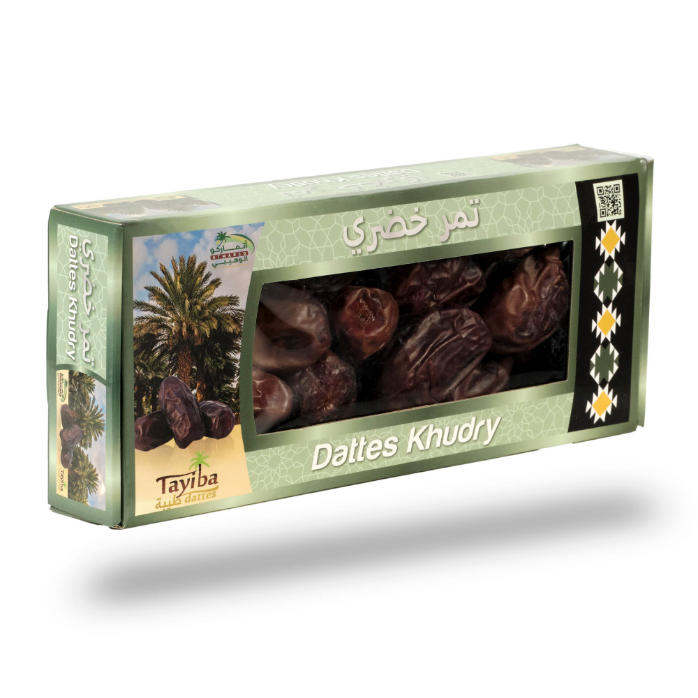Its flesh is firm yet tender and pleasantly moist, melting in the mouth despite its seemingly dry appearance. Thanks to its exceptional flavor, Khudry dates are widely used in pastry and chocolate-making, offering delightful notes of caramel and coffee.