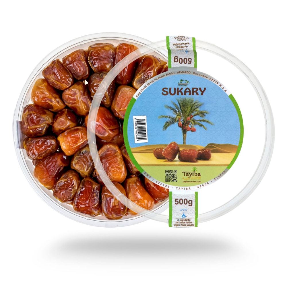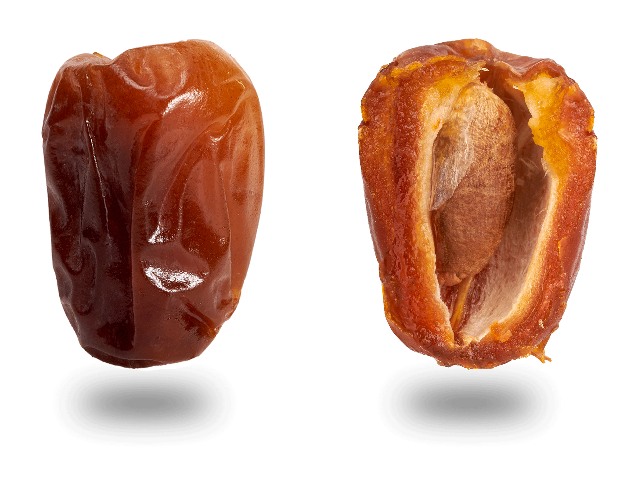 The color of Sukary dates ranges from ochre yellow to burgundy. Their flesh is soft, creamy, and moist, with a pale interior. Natural sugar may appear as juice and/or crystals. This natural phenomenon is not a sign of spoilage.