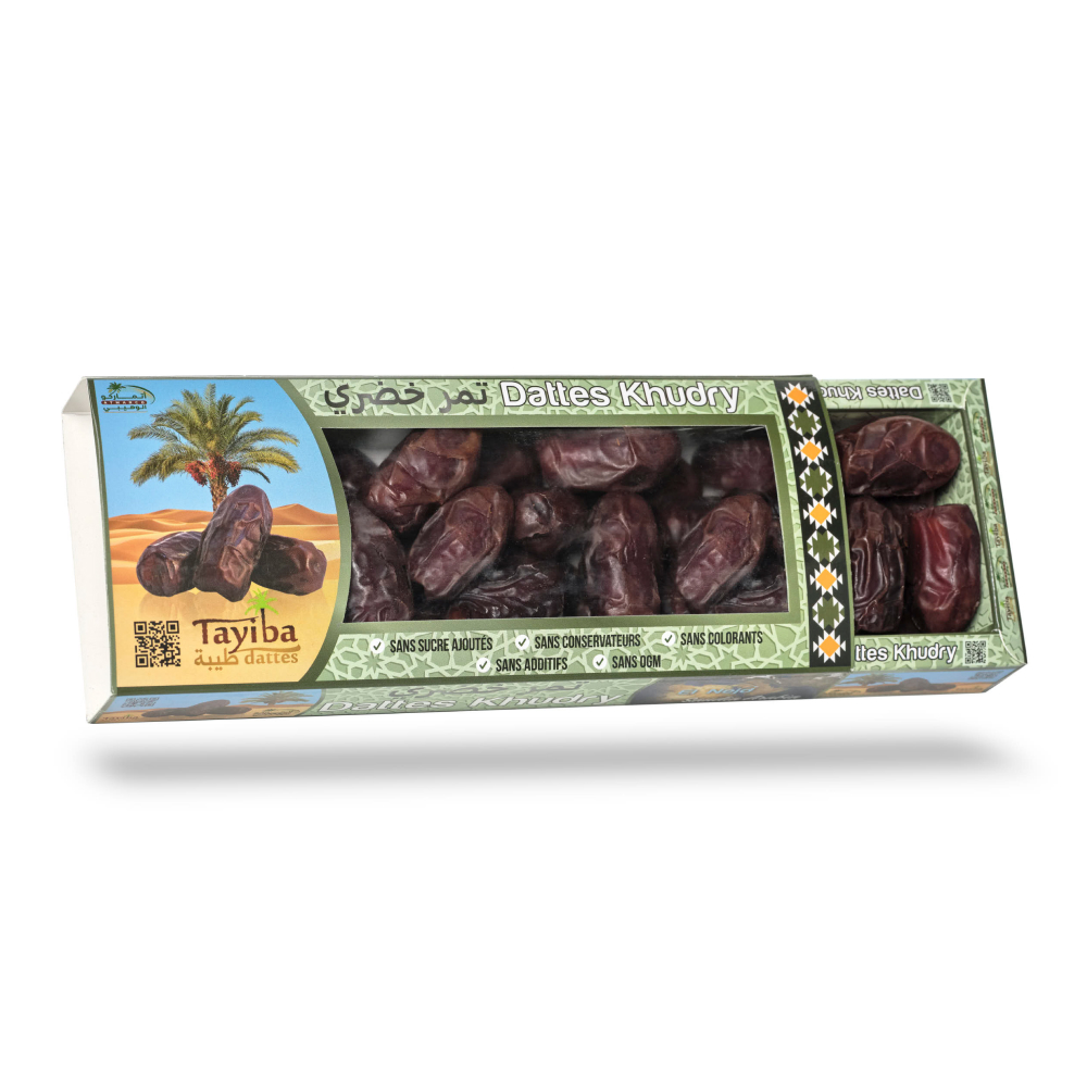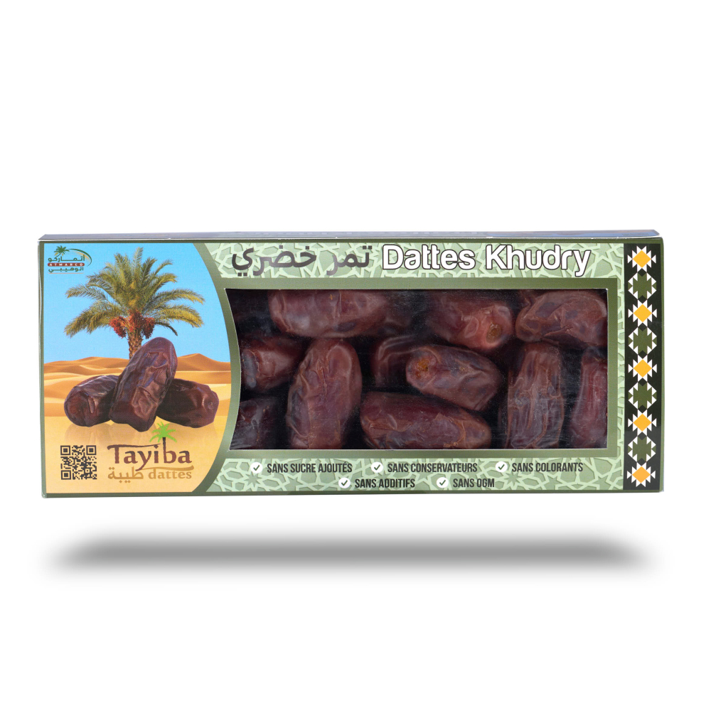 Les dattes Khudry sont également un excellent coupe-faim et pourront donc être consommées en cas de fringale. TAYIBA vous propose des dattes Khudry fermes, cueillies à maturité complète, en provenance directe de la région du Nejd, berceau de l’Arabie moderne.